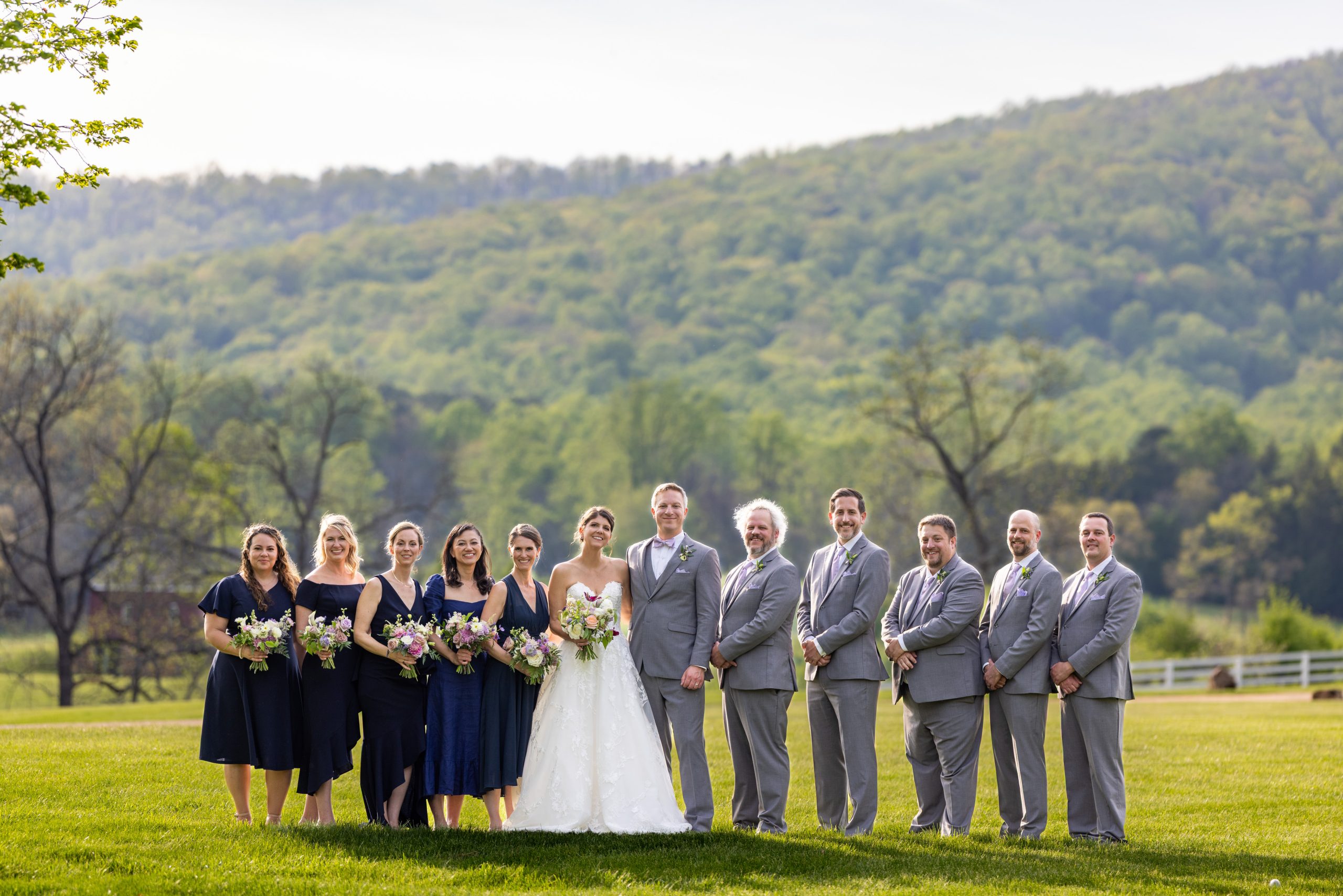 Spring has a way of bringing life back into everything—the soft green of budding trees, the fresh scent of the air, and the gentle warmth of a breezy April day. But when royal blue makes its entrance, the scene transforms into something truly magical. That’s exactly what happened at Sam and Reid’s wedding at Castle Hill Cider. At first glance, you could see the bridesmaids’ royal blue dresses standing out beautifully against the lush greenery, creating a visual harmony that was impossible to miss.
