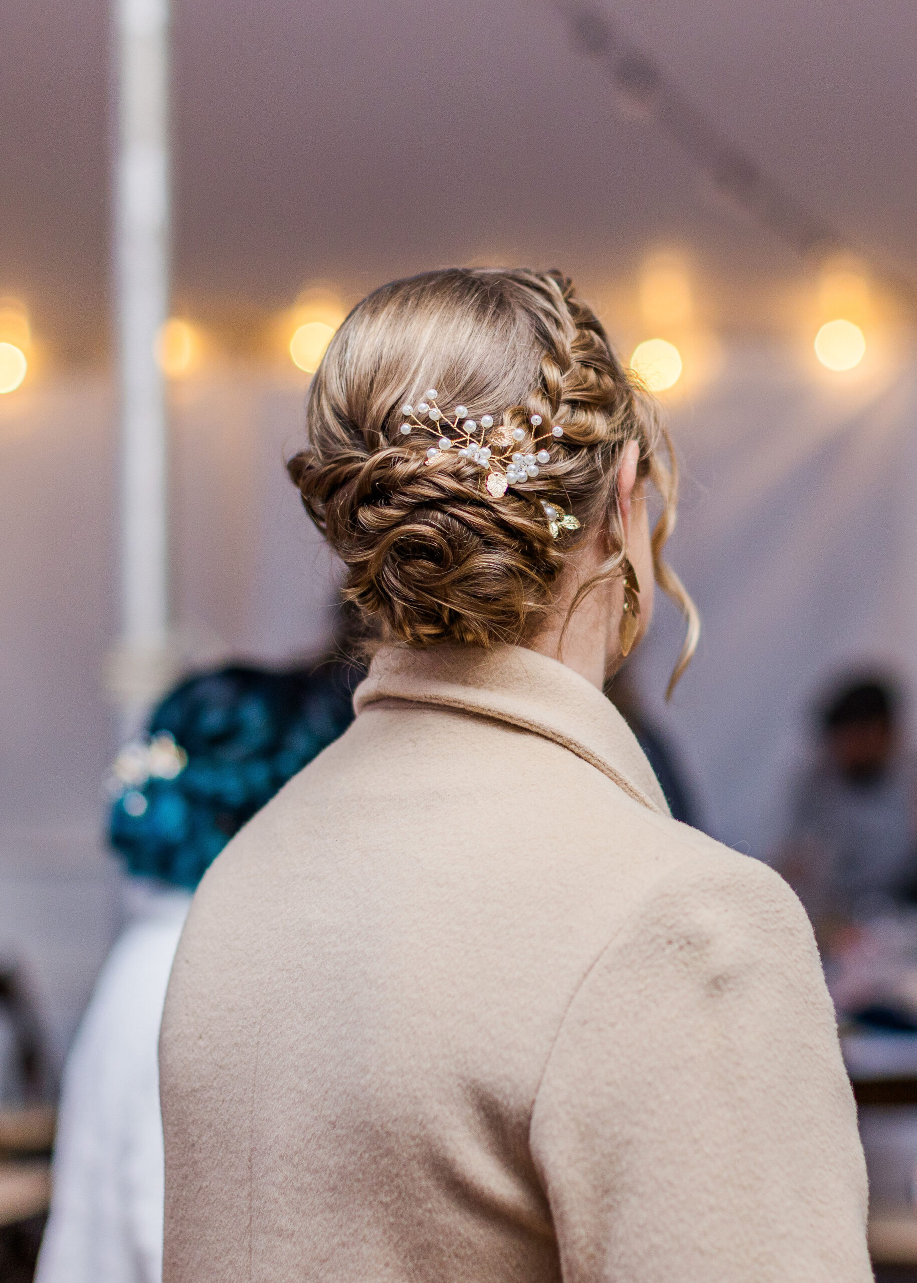 For her bridal hair, we crafted a stunning side-braided style that flowed into a low, romantic bun. Loose tendrils framed her face, adding a touch of softness that felt both modern and whimsical—perfectly complementing the dreamy forest backdrop. Her makeup was all about that natural glow: luminous, polished, and timeless, ensuring she looked as breathtaking in person as she did in photographs.