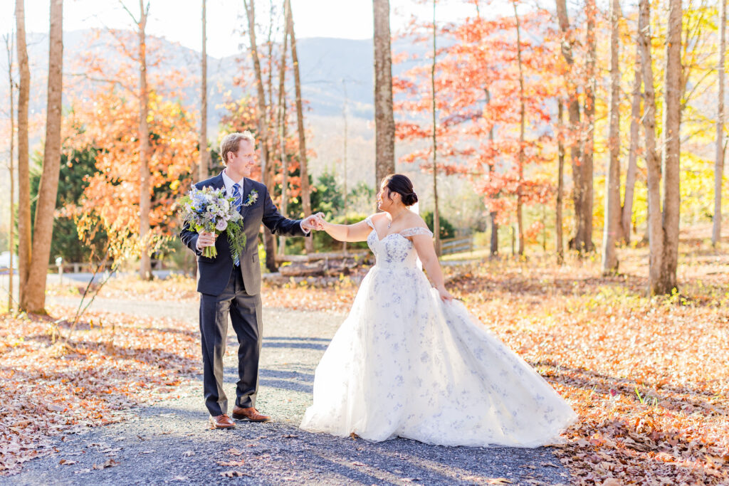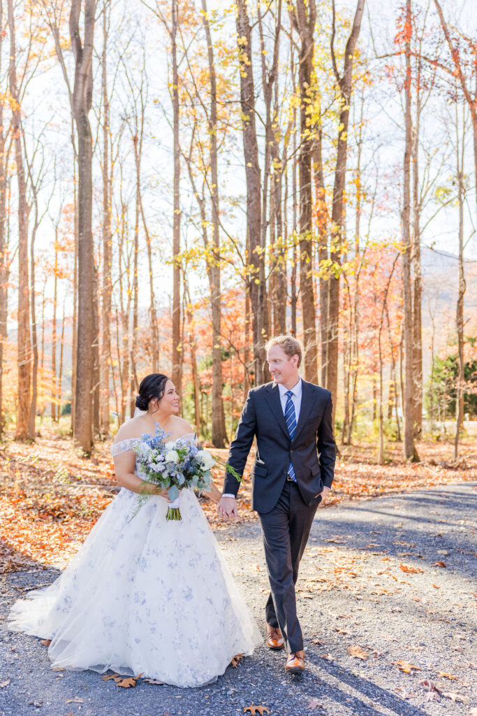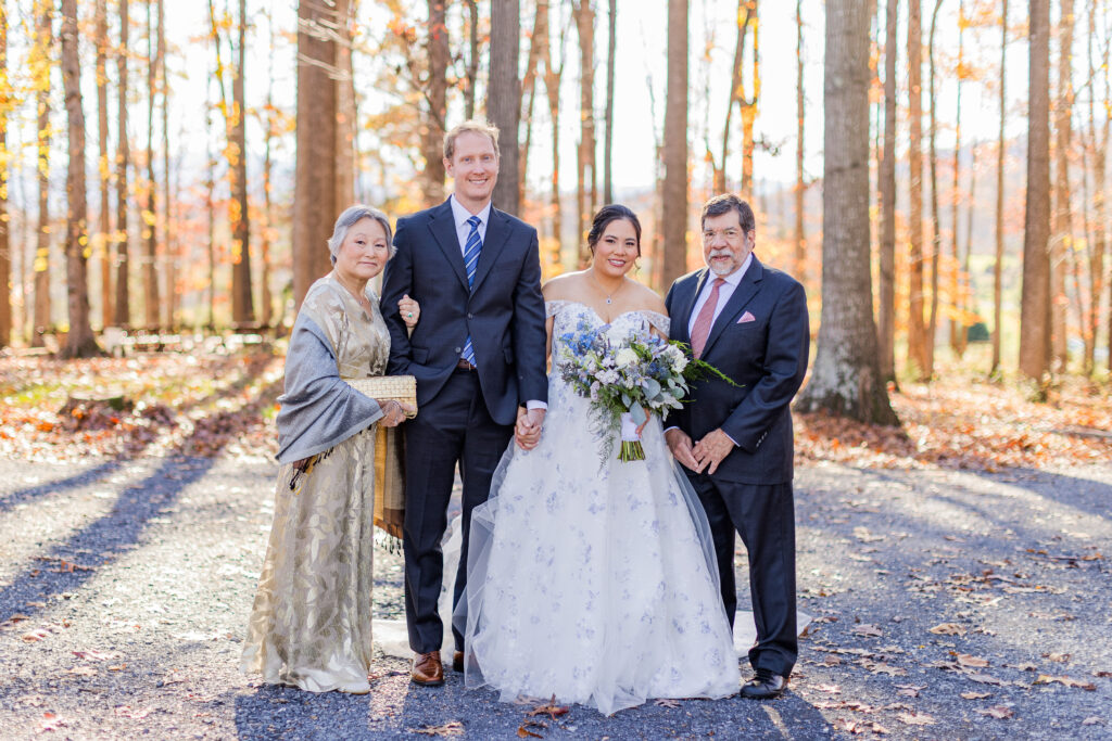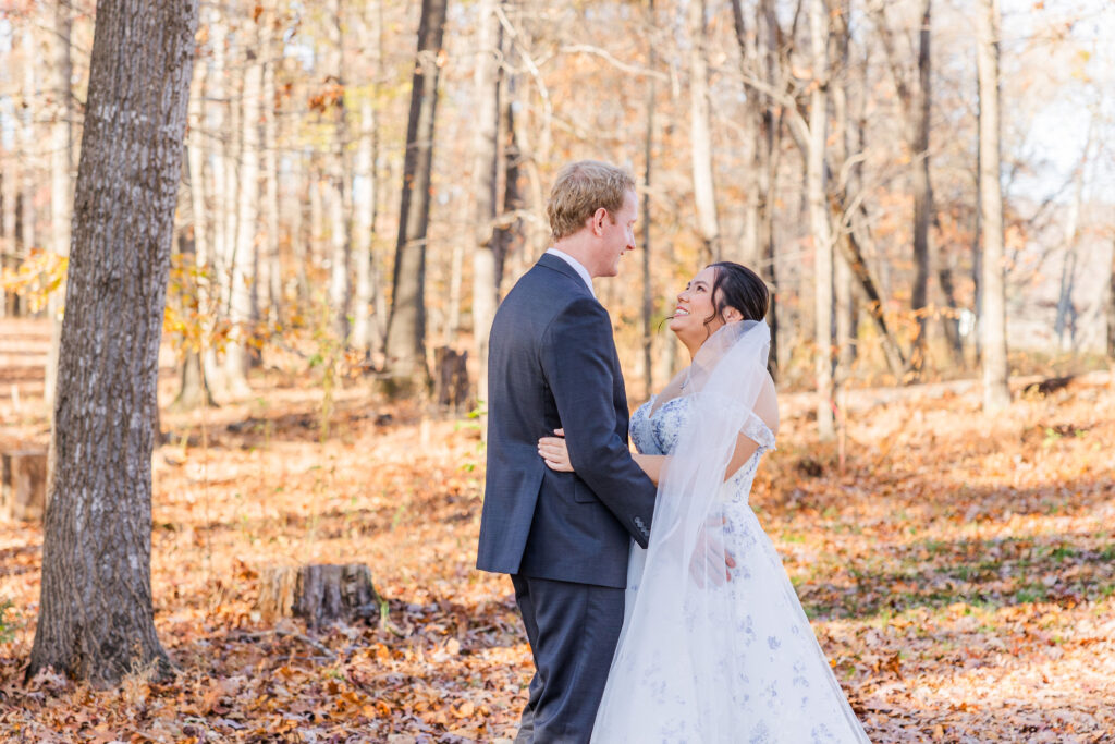Some weddings just stay with you forever, and Cristine and Chris’s wedding at Indigo House was one of those! There is something about forest weddings in peak autumn that just hits different—sunlight filtering through golden leaves, the earthy scent of the woods, and the quiet, natural beauty that made every moment feel intimate and magical.